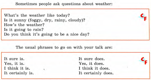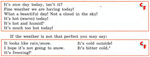 You know that English people often begin talking about weather when they meet each other. These are the usual phrases: