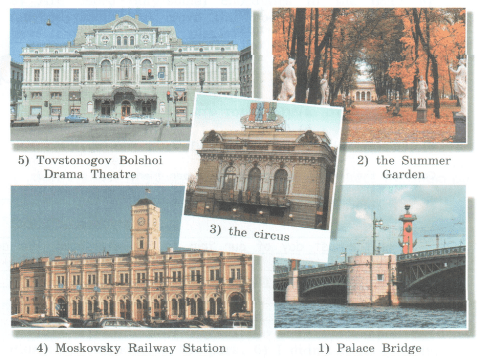 A. Listen, (7), and say how long it took Yura to get from Dvortsovaya Square to different places in St Petersburg. Match the time and the pictures.