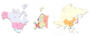 Look at the maps of North America, Europe and Asia and answer the questions.