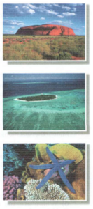 I think the text is about famous natural places in Australia, like the big red rock and the coral reef. (Я думаю, что текст об известных природных местах Австралии, таких как большая красная скала и коралловый риф.)