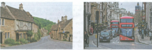 I have chosen the first picture. It shows a quiet street in a British village [‘vɪlɪʤ] [вилидж]. In the picture, I can see old stone cottages [‘kɒtɪʤɪz] [котиджиз] and green hills in the background. I think it is summer or early autumn because the trees and grass are bright green. The street is completely empty, and there are no cars or people. It seems that life here is slow and calm. This place looks very peaceful [‘pi:sf(ə)l] [писфул] and relaxing. I feel that I would like to live in such a house. It is a perfect place to have a rest from the city noise.