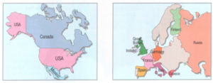 B. Look at the map of Europe and answer the questions.